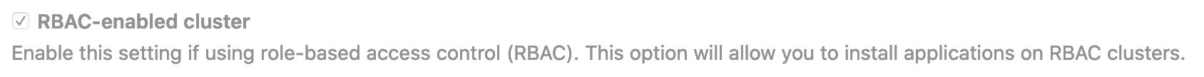 When connecting a cluster through GitLab integration, you may specify whether the cluster is RBAC-enabled or not. This affects how GitLab interacts with the cluster for certain operations. If you did not check the RBAC-enabled cluster checkbox at creation time, GitLab assumes RBAC is disabled for your cluster when interacting with it. If so, you must disable RBAC on your cluster for the integration to work properly.